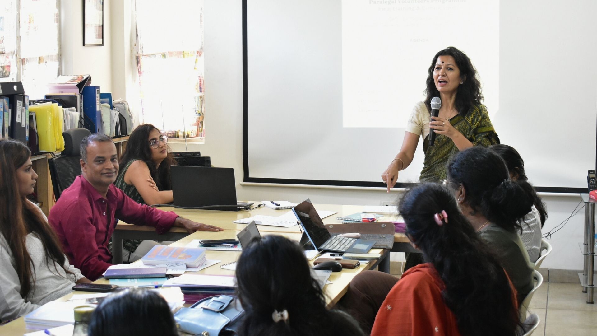 Ms. Kothari led an interactive training session on the rights of transgender persons in India, particularly under the Transgender Persons Rights Act, 2019. She began by asking the PLVs if they had dealt with issues regarding the rights of transgender people in the course of their work, observing the importance of PLVs familiarising themselves with this issue. She then proceeded to elaborate on the rights of transgender persons as per the Supreme Court judgment in NALSA v Union of India (2014) emphasising the right to self-identify gender. The Transgender Persons Act, 2019 which followed recognizes the rights of transgender persons to not be discriminated, in addition to providing the facilities for legally changing gender.